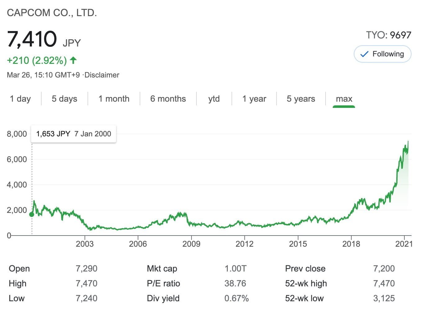 As ações da Capcom na bolsa de Tóquio atingiram um valor recorde nesta sexta-feira (26) após o lançamento de Monster Hunter Rise para Nintendo Switch. Elas subiram 14% e chegaram ao patamar de 7.410 ienes, o correspondente a 67,56 dólares. Isso fez com que a empresa atingisse um valor de mercado de mais de 7 bilhões de dólares.
