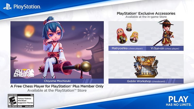 A responsável pelo console também ressaltou que os membro do PlayStation Plus terão um conteúdo exclusivo do Auto Chess. Chiyome Mochizuki poderá ser obtida gratuitamente por todos os assinantes do serviço utilizando a PlayStation Store a partir do dia da chegada do jogo na plataforma.