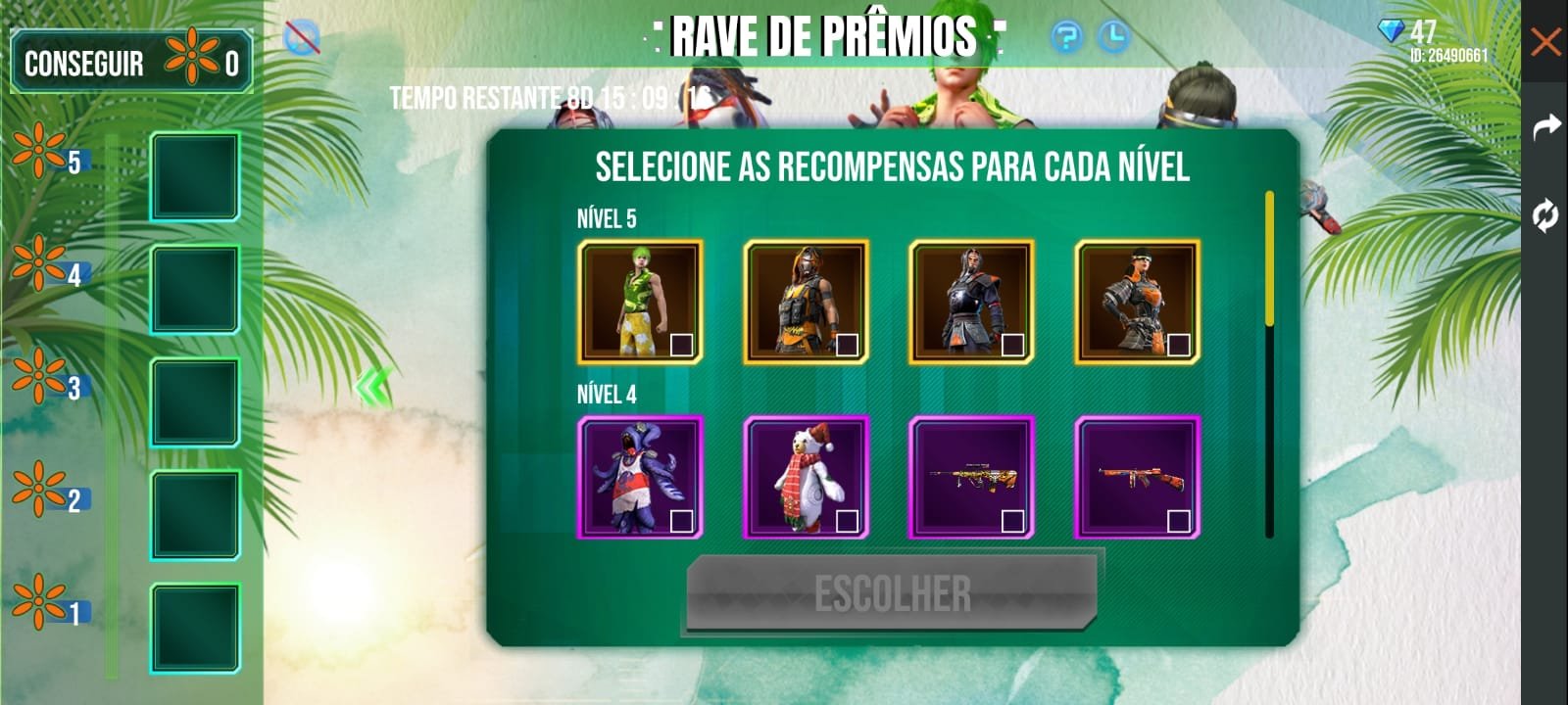 O Free Fire receberá a partir desta quarta-feira (5) o evento Rave de Prêmios, que fornecerá aos jogadores a chance de conquistar diversos prêmios diferentes para ficar ainda mais personalizado durante a partida. Entre eles, conjuntos completos para os personagens, skins para modificar o armamento, emotes e caixas de itens.